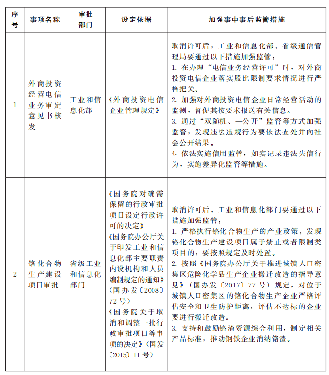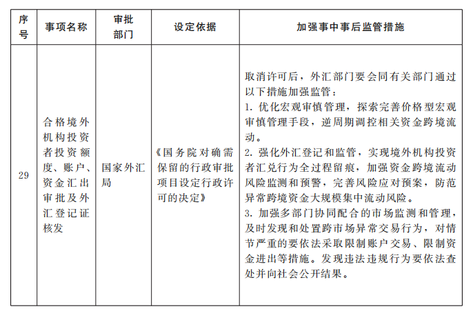 经研究论证,国务院决定取消29项行政许可事项,下放4项行政许可事项的审批层级,现予公布。另有20项有关法律设定的行政许可事项,国务院将依照法定程序提请全国人民代表大会常务委员会修订相关法律规定。