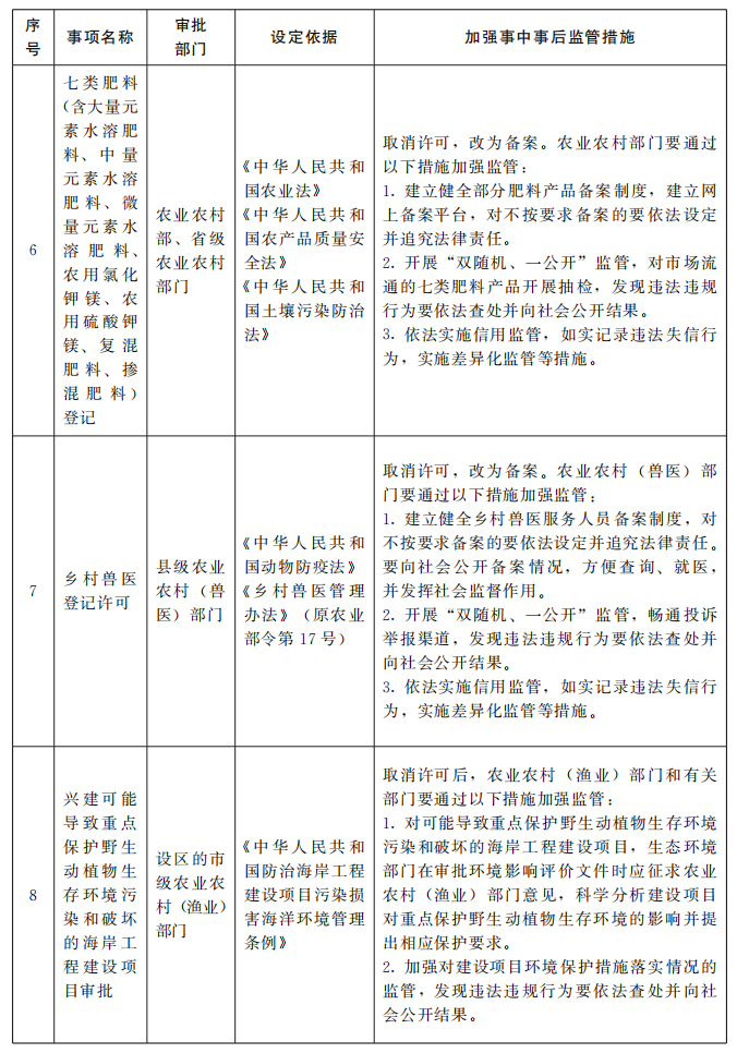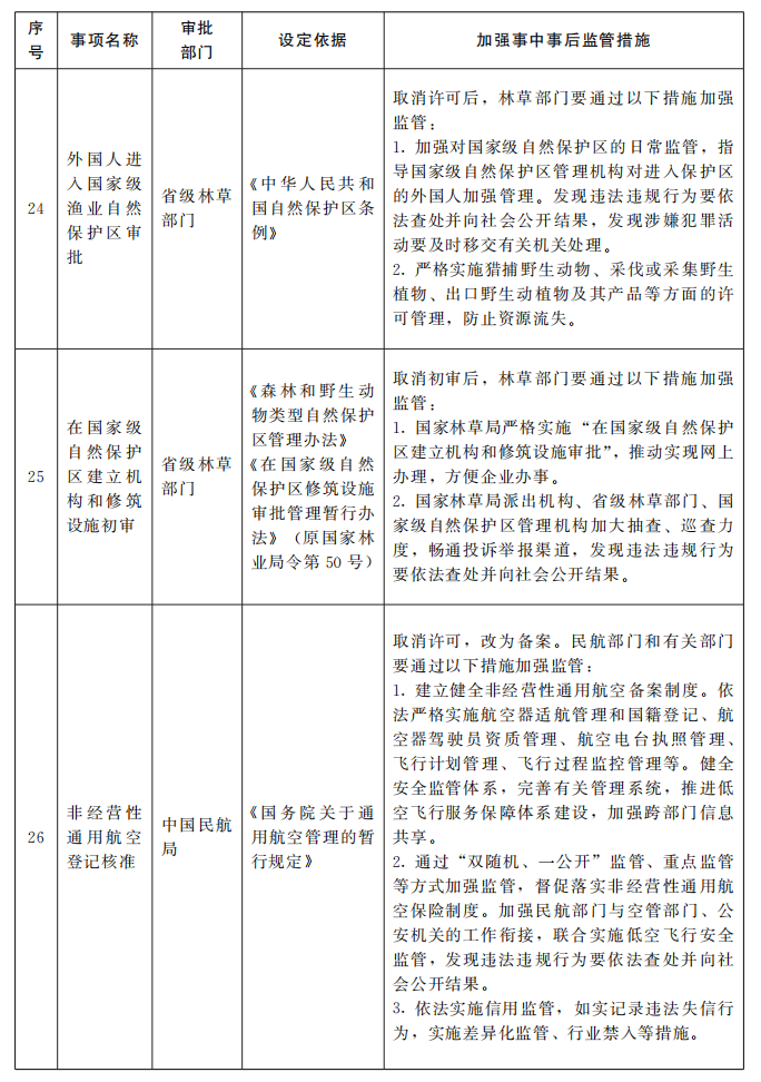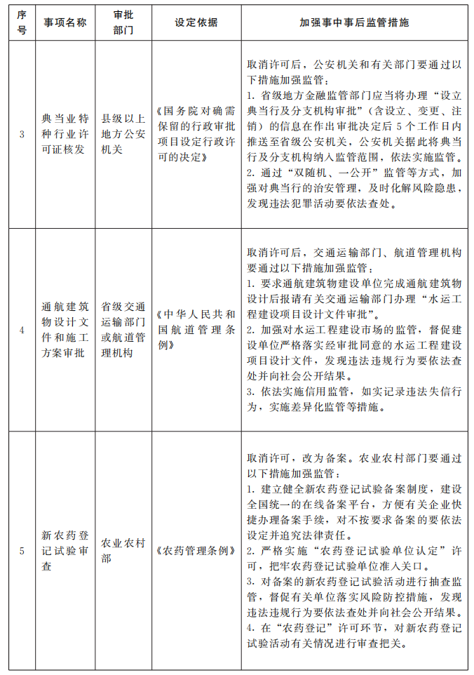 各地区、各有关部门要抓紧做好取消和下放行政许可事项的贯彻落实工作,进一步细化改革配套措施,加强和创新事中事后监管,确保放得开、接得住、管得好。自本决定发布之日起20个工作日内,国务院有关部门要向社会公布事中事后监管细则,并加强宣传解读和督促落实。
