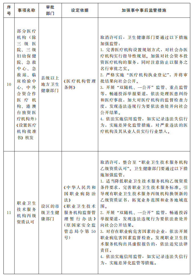 取消许可,整合至“职业卫生技术服务机构乙级资质认可”。卫生健康部门要通过以下措施加强监管: 1.适当降低职业卫生技术服务机构乙级资质条件要求,完善职业卫生技术服务标准。引导现有职业卫生技术服务丙级机构换领新的乙级资质证书,拓宽业务范围和业务地域范围。 2.开展“双随机、一公开”监管,畅通投诉举报渠道,发现违法违规行为要依法查处并向社会公开结果。 3.对存在职业病危害因素的企业,依法开展职业病危害因素监督检查。发现职业卫生技术服务机构出具虚假报告的,依法追究法律责任。 4.依法实施信用监管,如实记录违法失信行为,实施差异化监管等措施。 |