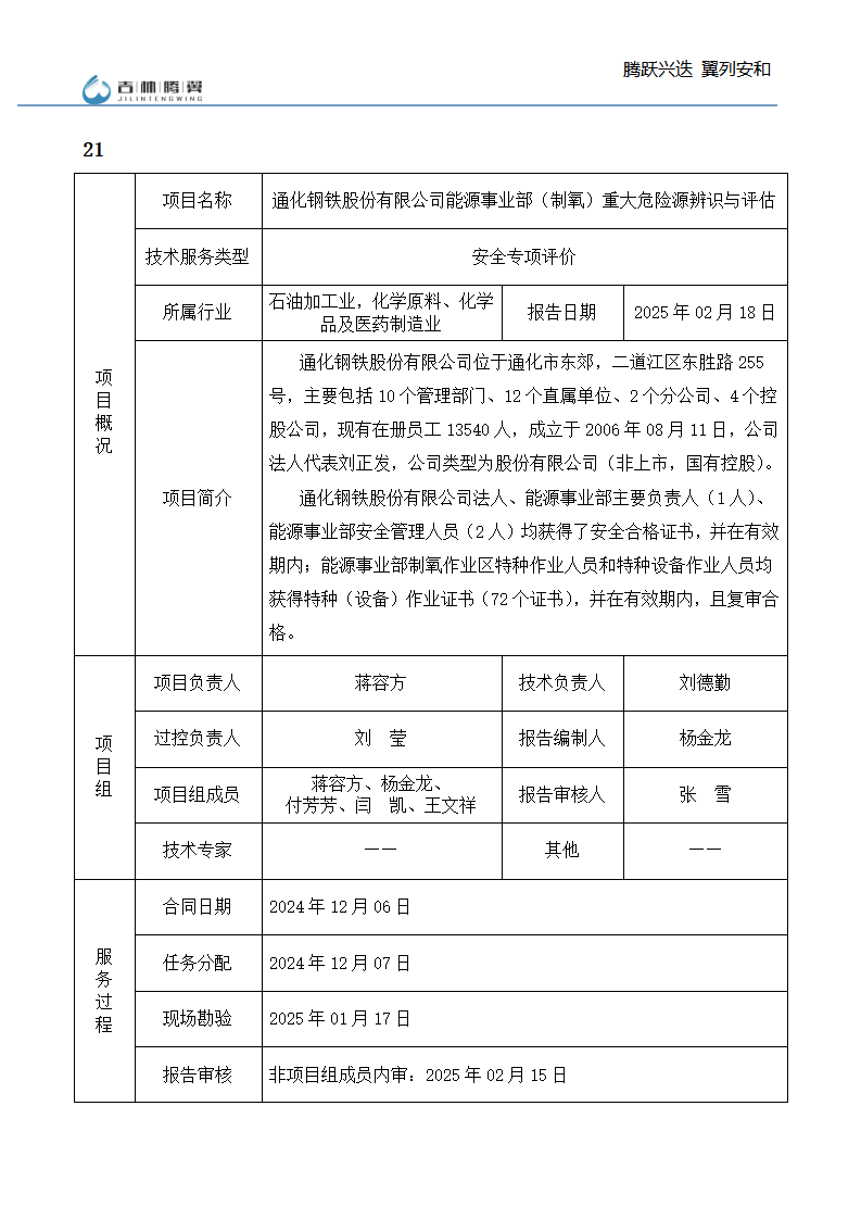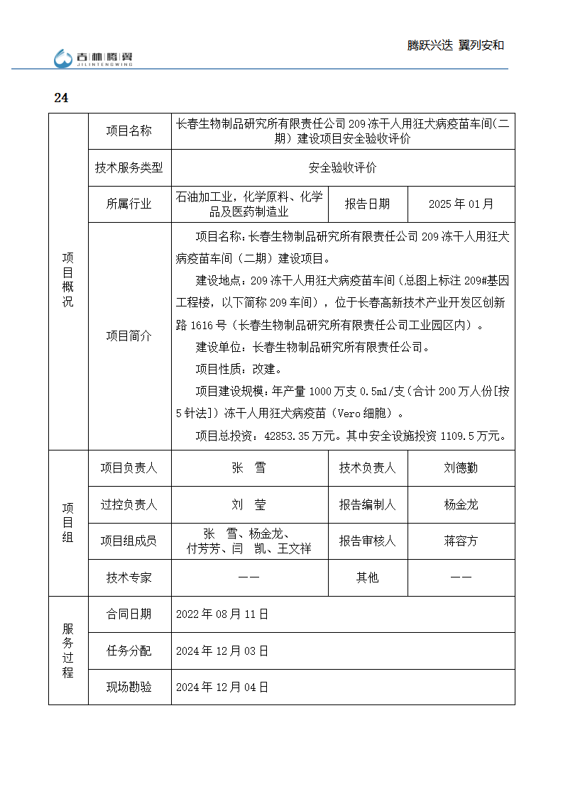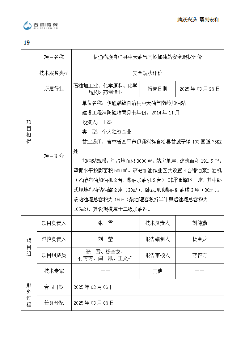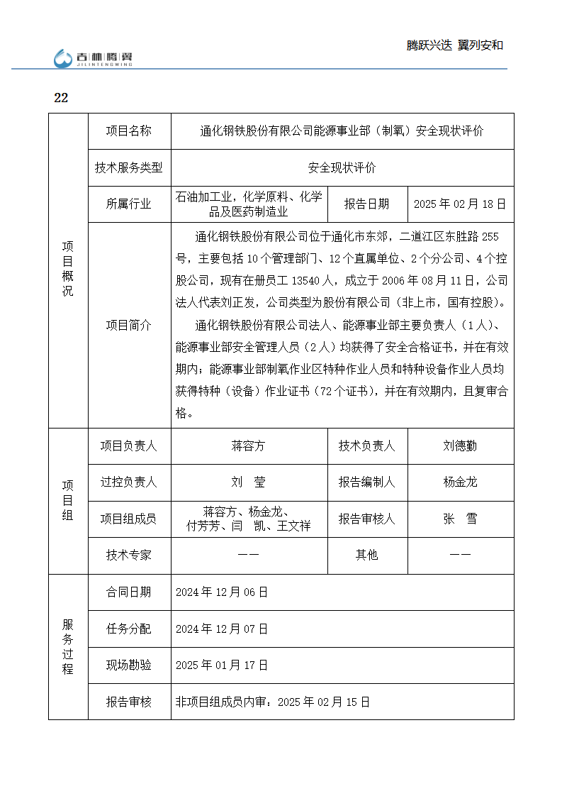 吉林省腾翼安全环境技术服务有限公司于2007年10月30日在松原市注册成立,现总部位于长春北湖科技园,2008年6月3日取得安全评价机构乙级资质,2017年1月5日取得职业卫生技术服务机构乙级资质,自相继获取安评和职评资质至2020年间,公司以打造“中国首屈一指的安全生产、职业健康、生态环保一站式综合服务体”为发展目标。目前,公司可为各类委托方提供安全与职业卫生评价,职业卫生与...